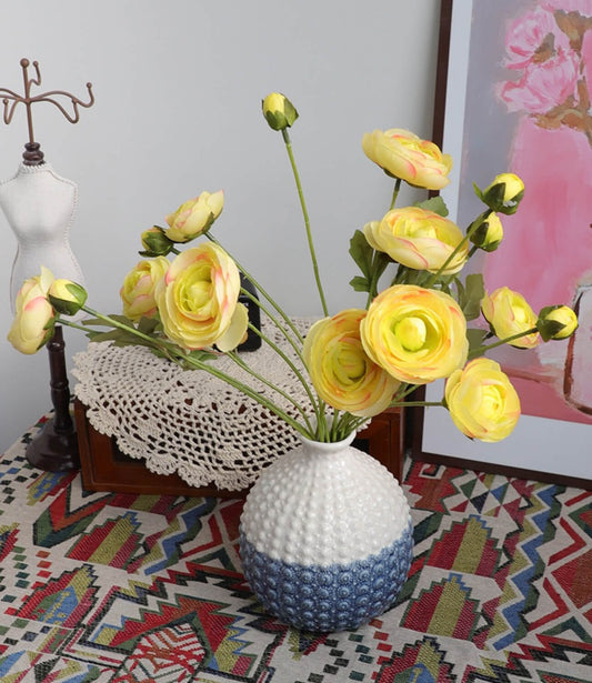 Minimalist Ceramic Art Vase - Yellow & Blue Modern Decor