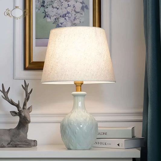 Vintage Ceramic Table Lamp with Handmade Fabric Shade