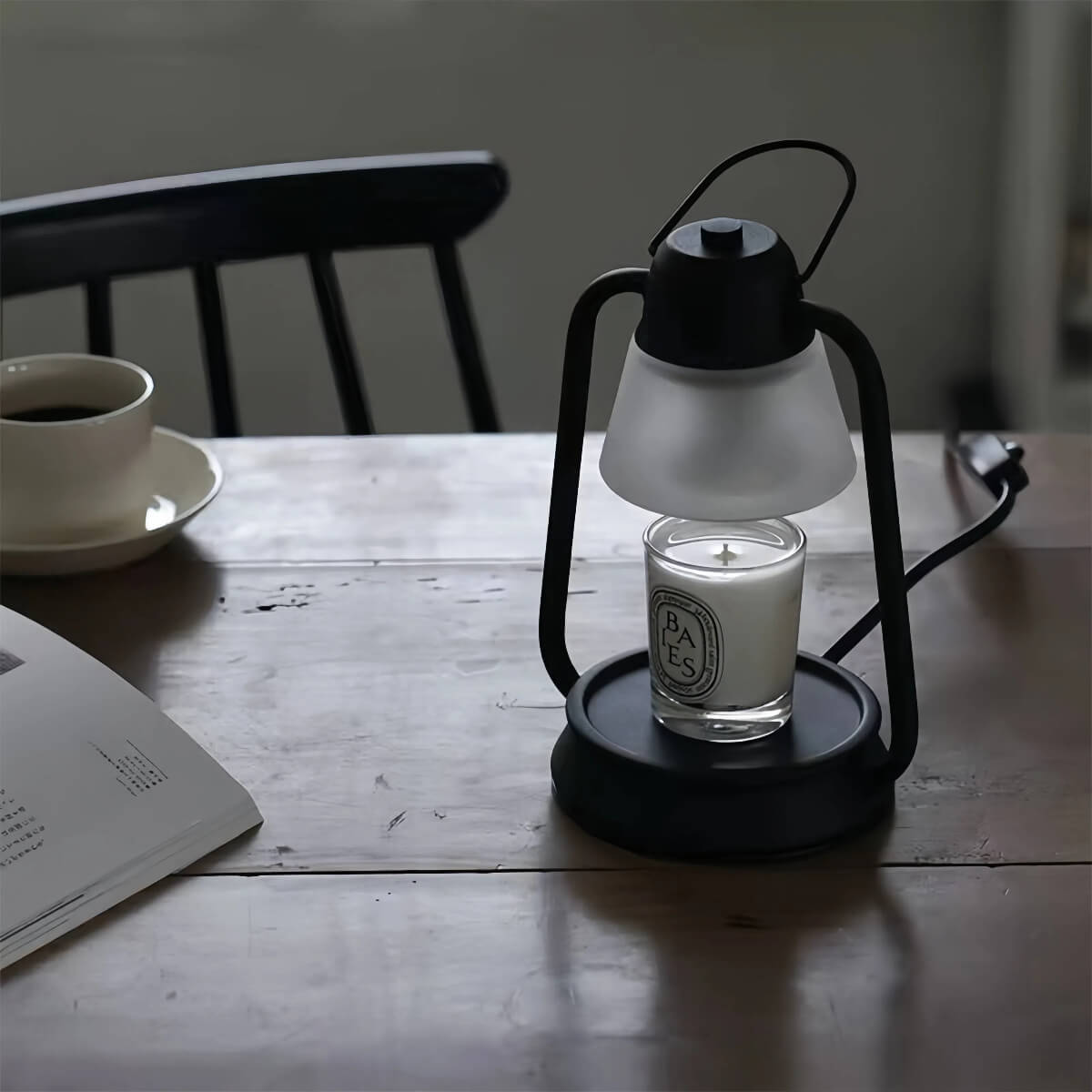 This eco-friendly aromatherapy candle lamp features a modern minimalist design.