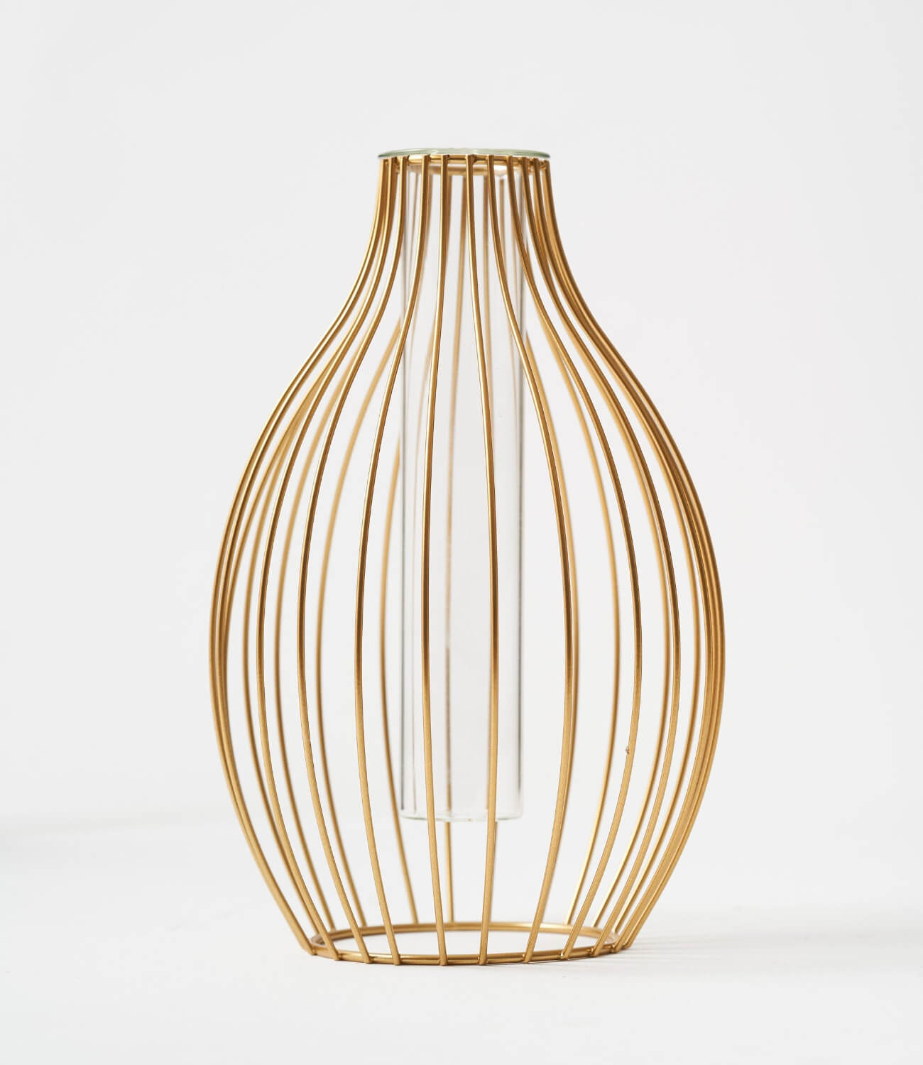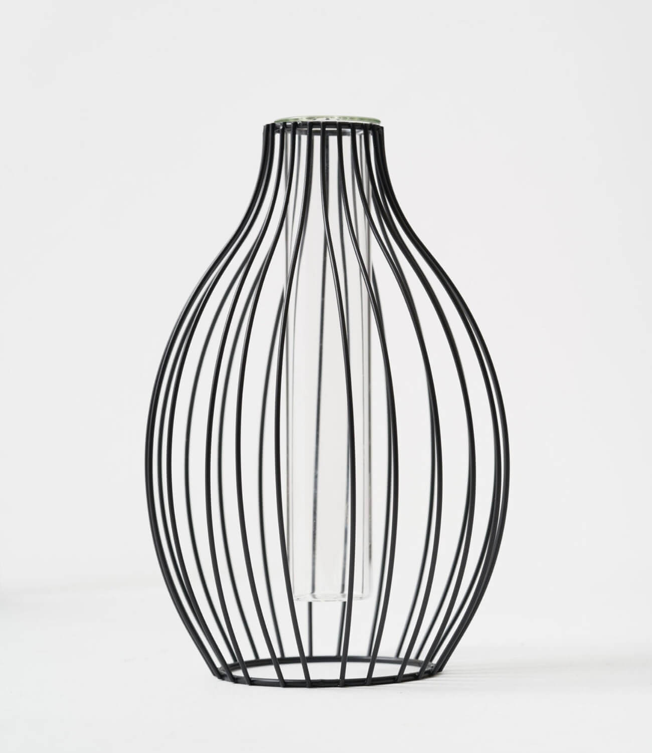 This vase is made with iron and is 24cm tall, 14cm wide, with a neck width of 4 cm.