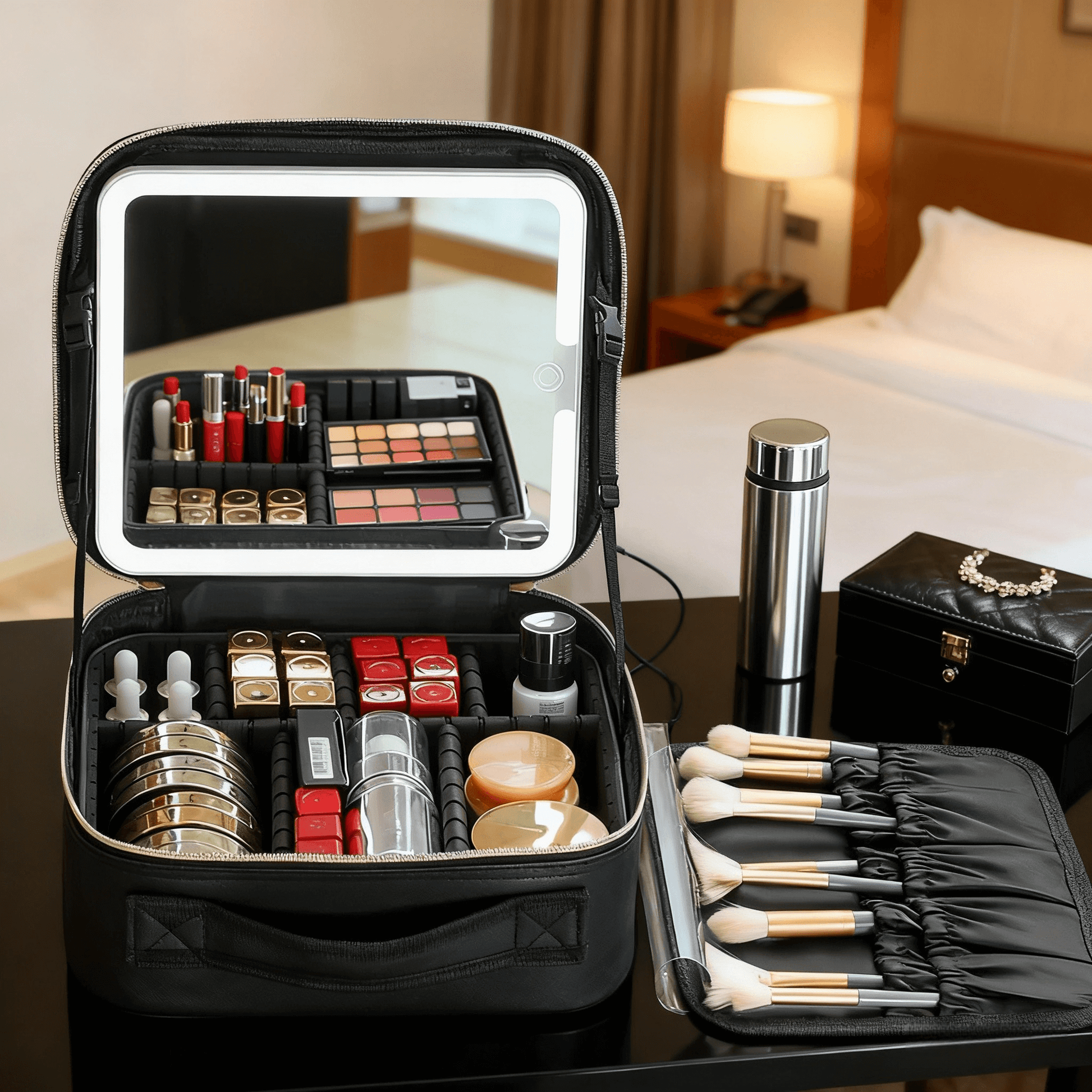Rechargeable LED Makeup Bag with Mirror – Perfect Gift for Travel & Daily Use